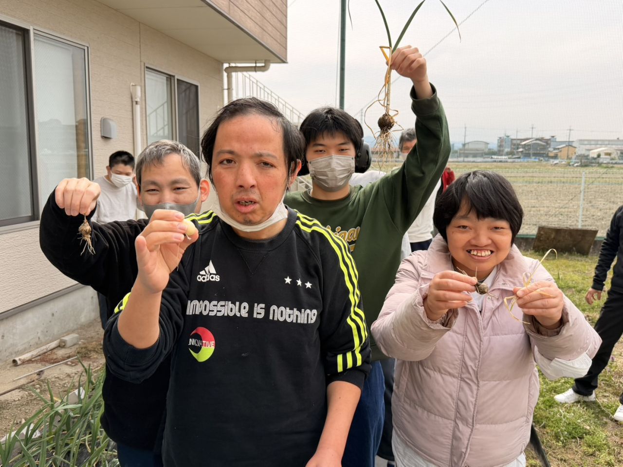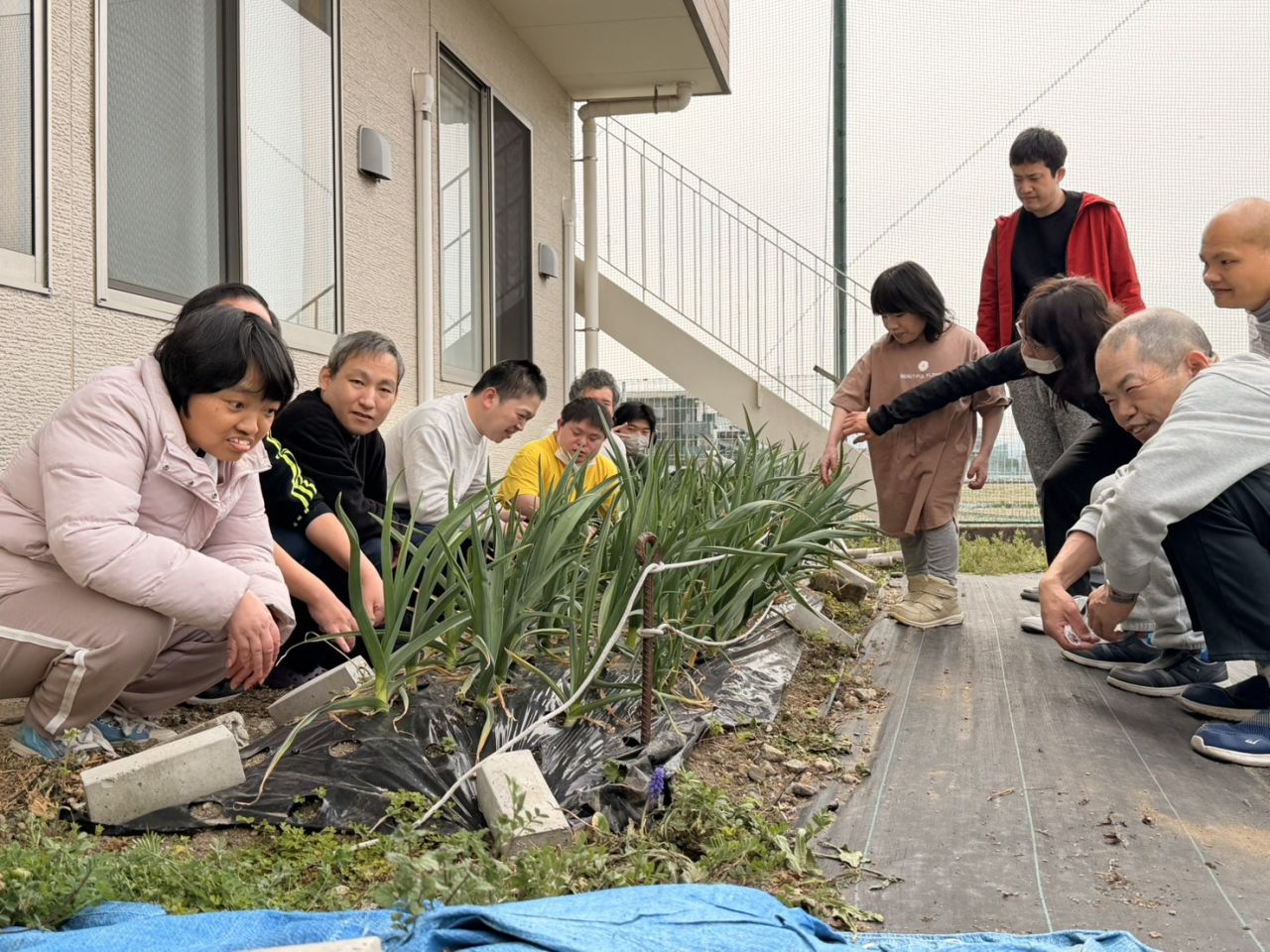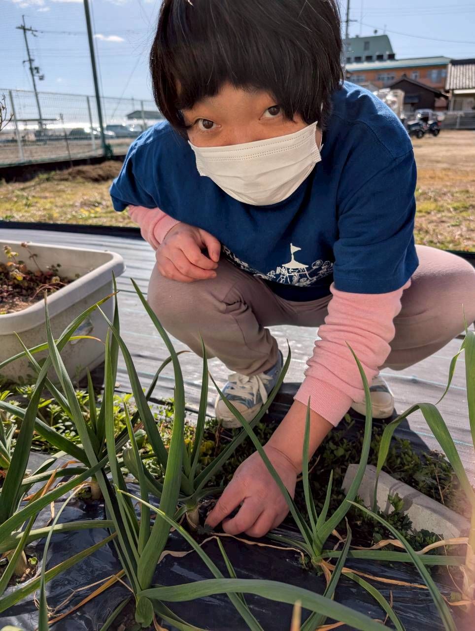 ぐんぐん敷地内にある農園ににんにくを育てています。皆で草引きと成長過程の観察を行いました。