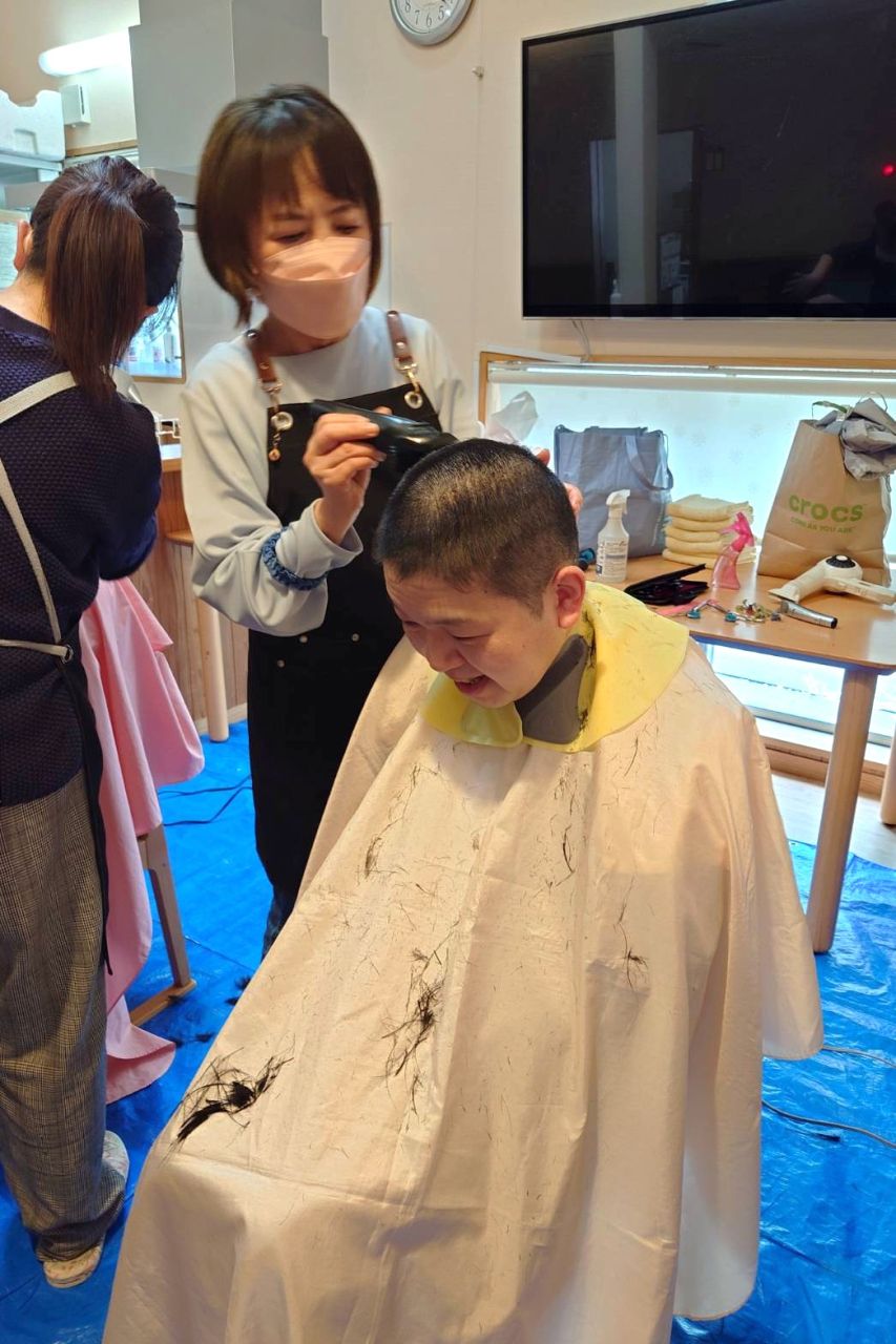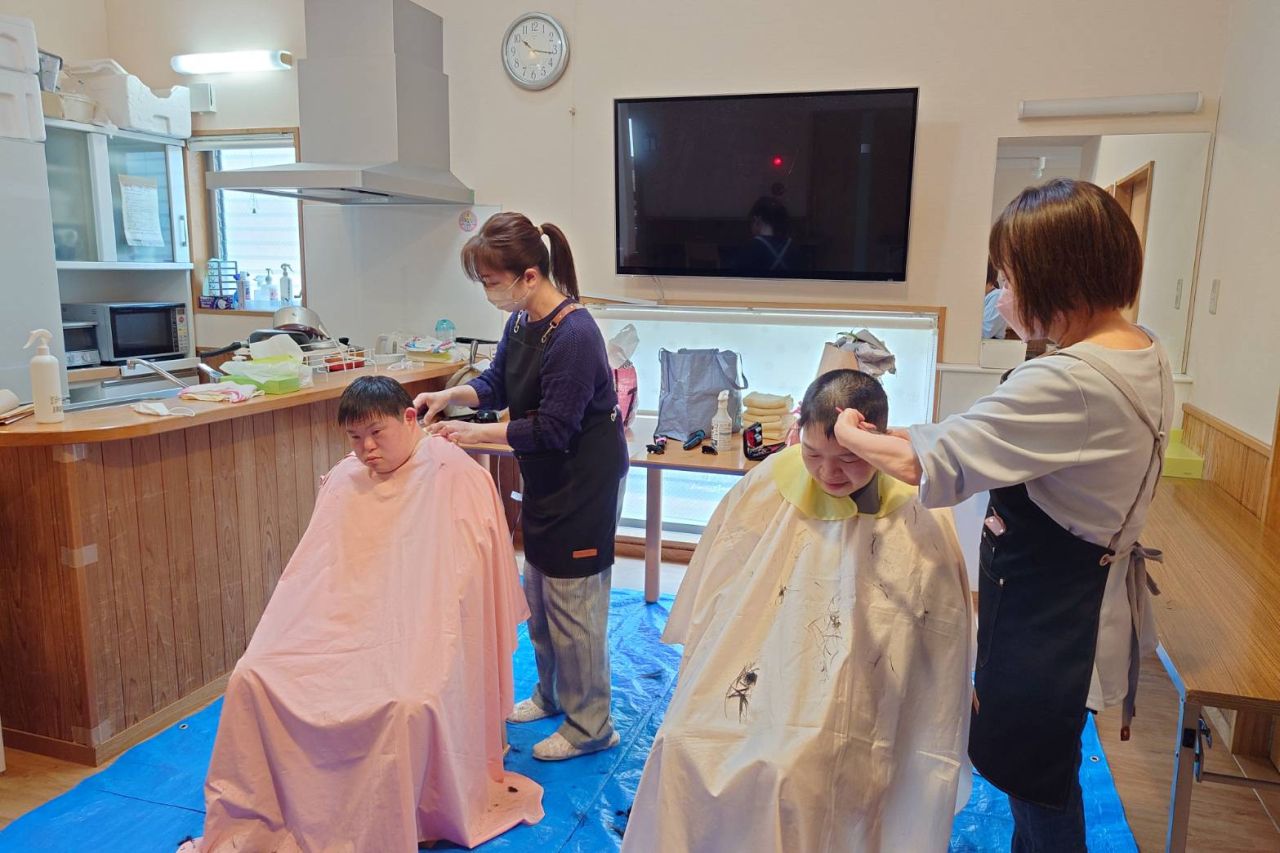 ぐんぐんハウスでは定期的に美容師さんに来所いただき、散髪を行っていただいています。施術のあいだ、皆さんイスに座って待っておられます。